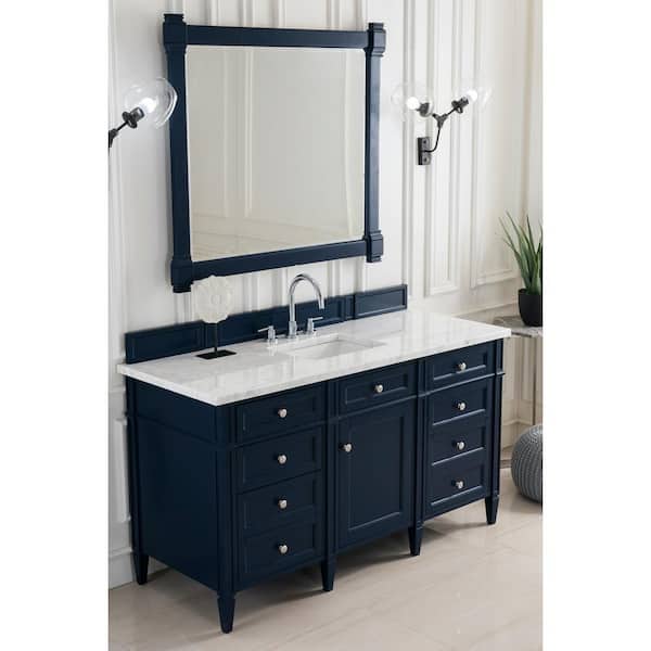Brittany 60 in. W. x 23.5 in.D x 34 in. H Single Vanity in Victory Blue with Marble Top in Carrara White