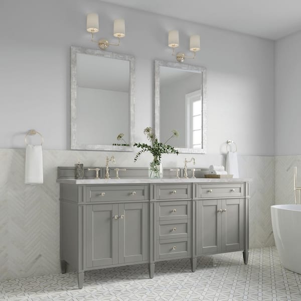 Brittany 72.0 in. W x 23.5 in. D x 34.0 in. H Bathroom Vanity in Urban Gray with Victorian Silver Silestone Quartz Top