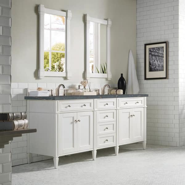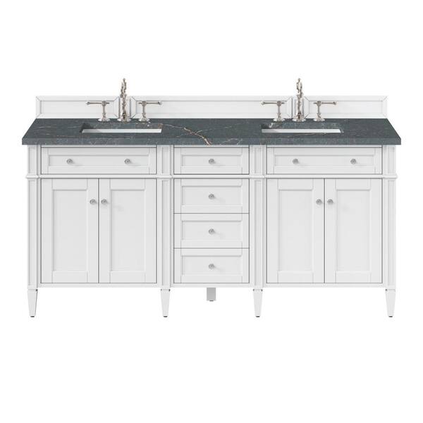 Brittany 72.0 in. W x 23.5 in. D x 34.0 in. H Double Bathroom Vanity in Bright White with Parisien Bleu Quartz Top