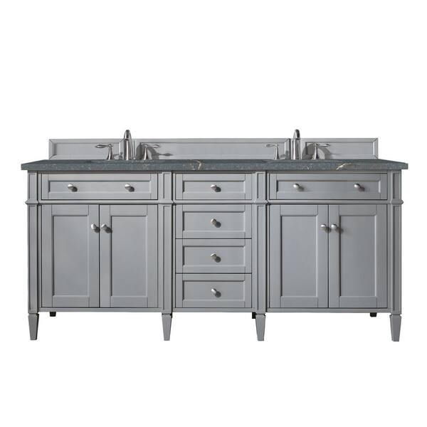 Brittany 72.0 in. W x 23.5 in. D x 34.0 in. H Double Bathroom Vanity in Urban Gray with Parisien Bleu Quartz Top