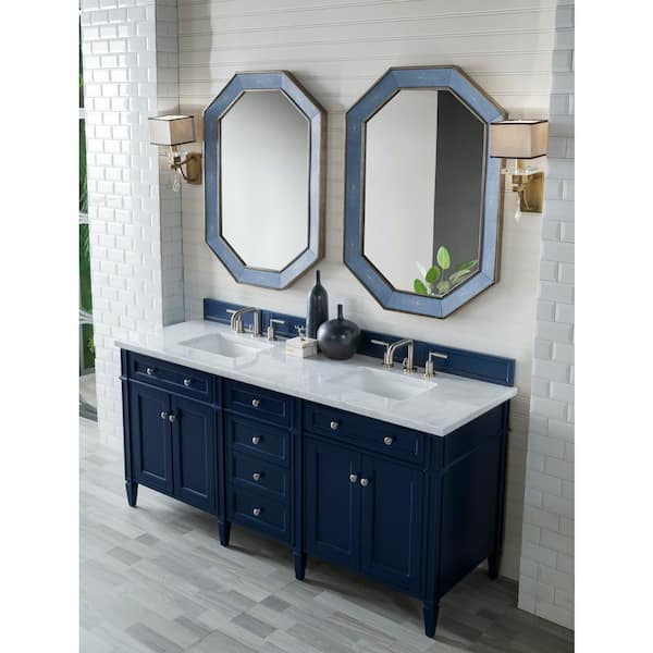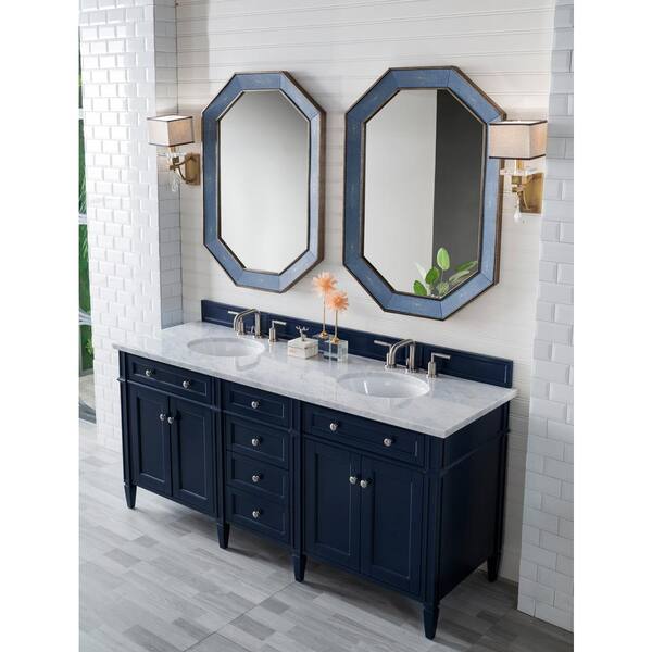 Brittany 72 in. W x 23.5 in. D x 34 in. H Double Bath Vanity Cabinet in Victory Blue with Marble Top in Carrara Marble
