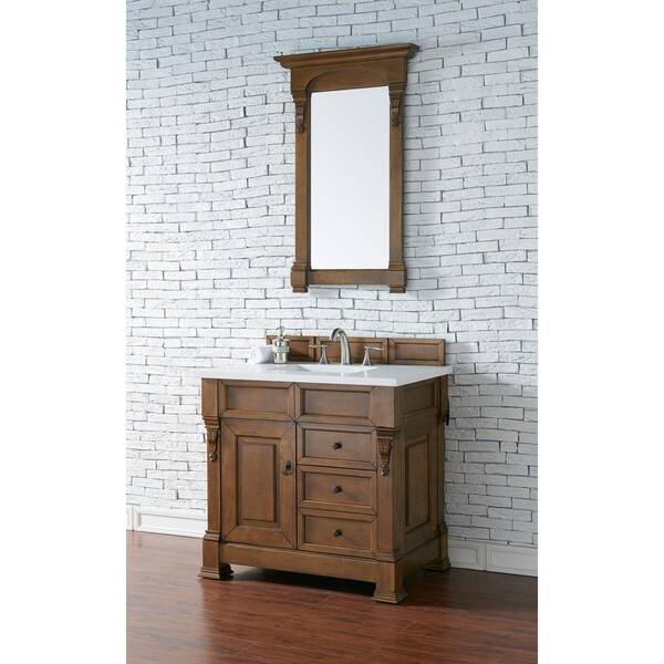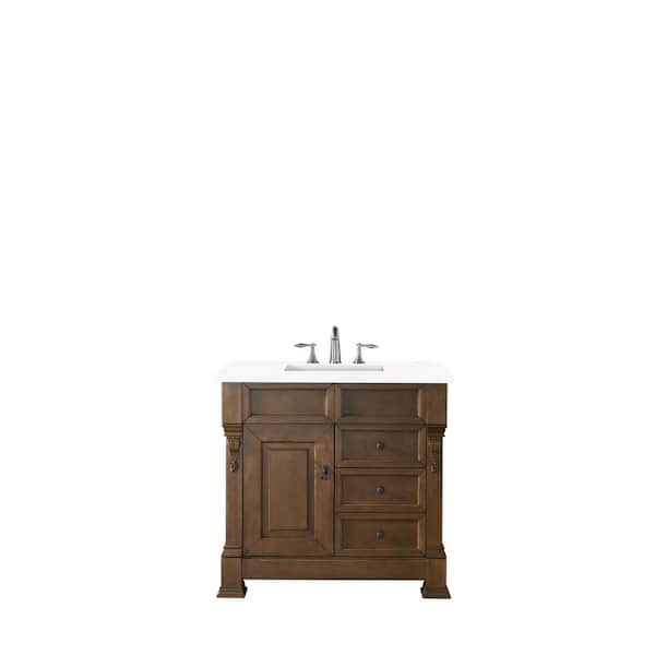 Brookfield 36.0 in. W x 23.5 in. D x 34.3 in. H Bathroom Vanity in Country Oak with White Zeus Quartz Top