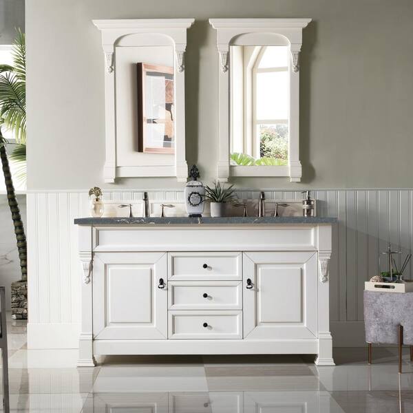 Brookfield 60.0 in. W x 23.5 in. D x 34.3 in. H Double Bathroom Vanity in Bright White with Parisien Bleu Quartz Top