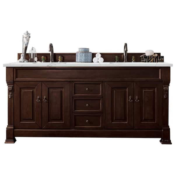 Brookfield 72 in. W x 23.5 in. D x 34.3 in. H Bathroom Vanity in Burnished Mahogany with Ethereal Noctis Quartz Top