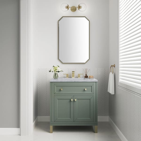 Chicago 30.0 in. W x 23.5 in. D x 33.76 in. H Single Bath Vanity in Smokey Celadon with Carrara White Marble Top