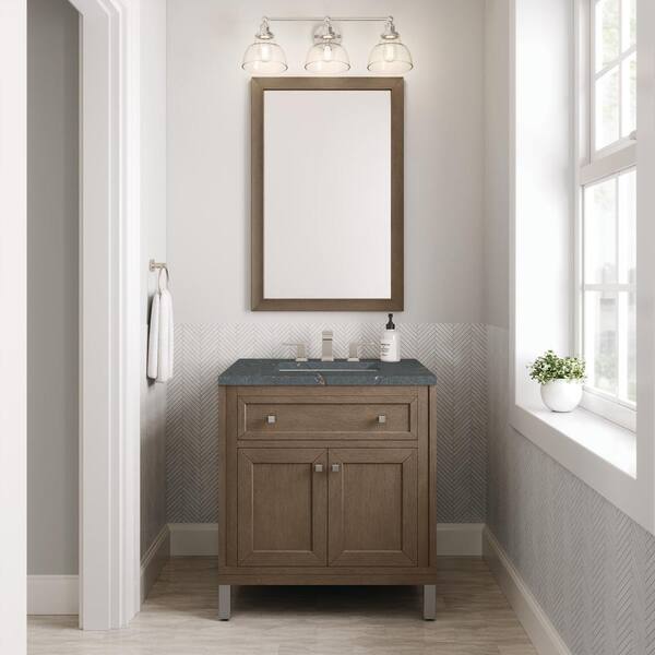 Chicago 30.0 in. W x 23.5 in. D x 34.0 in. H Single Bathroom Vanity Whitewashed Walnut and Parisien Bleu Top