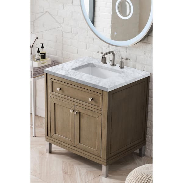 Chicago 30 in. W x 23.5 in.D x 34 in. H Single Bath Vanity in Whitewashed Walnut with Marble Top in Carrara White