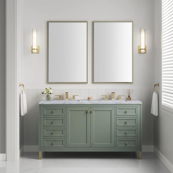 Chicago 60.0 in. W x 23.5 in. D x 33.76 in. H Double Bath Vanity in Smokey Celadon with Carrara White Marble Top