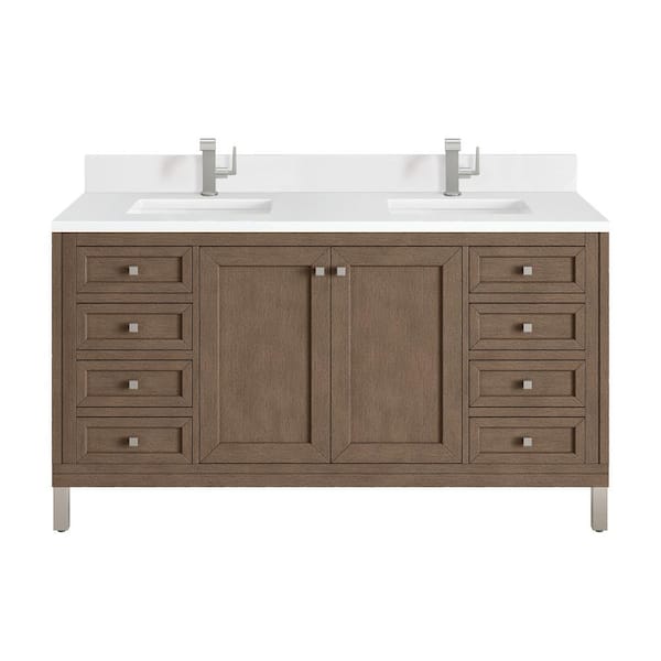 Chicago 60.0 in. W x 23.5 in. D x 33.8 in. H Bathroom Vanity in Whitewashed Walnut with White Zeus Silestone Quartz Top