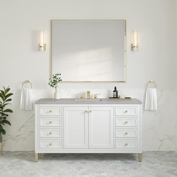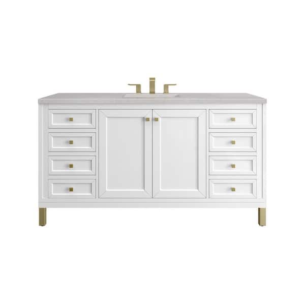 Chicago 60.0 in. W x 23.5 in. D x 34 in. H Bathroom Vanity in Glossy White with Eternal Serena Quartz Top