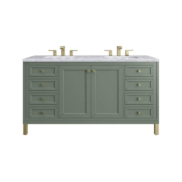 Chicago 60.0 in. W x 23.5 in. D x 34 in. H Bathroom Vanity in Smokey Celadon with Carrara Marble Marble Top