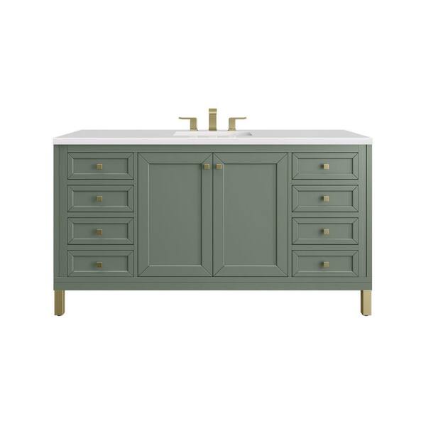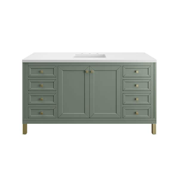 Chicago 60.0 in. W x 23.5 in. D x 34 in. H Bathroom Vanity in Smokey Celadon with White Zeus Quartz Top