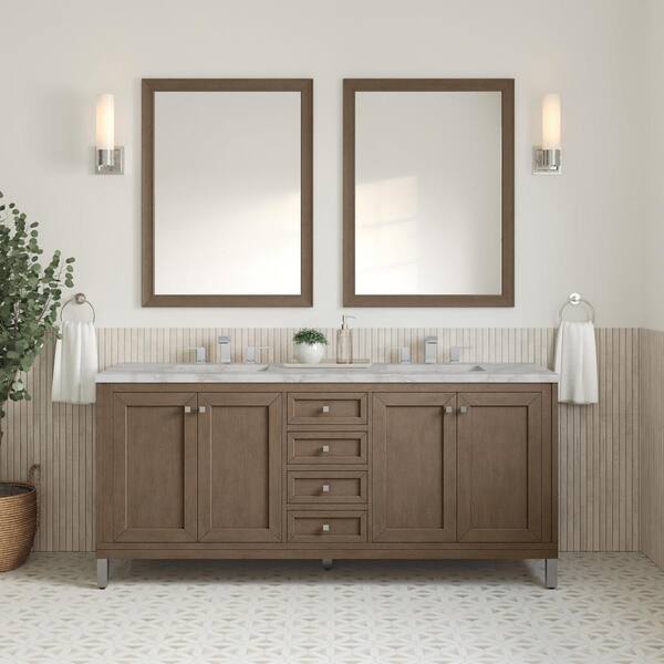 Chicago 72.0 in. W x 23.5 in. D x 33.8 in. H Double Bath Vanity in Whitewashed Walnut with Victorian Silver Quartz Top