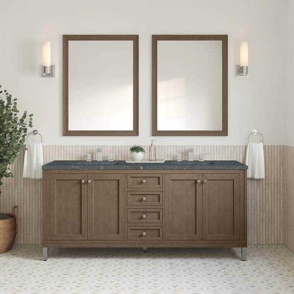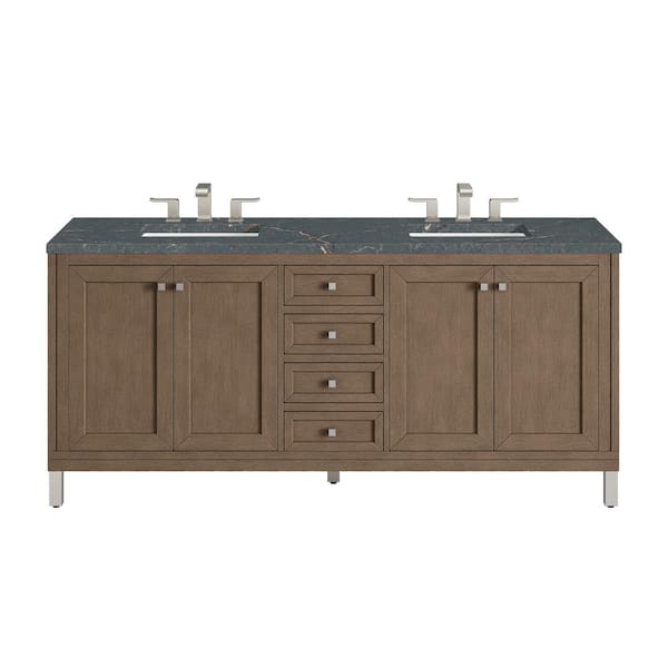 Chicago 72.0 in. W x 23.5 in. D x 33.8 in. H Double Bathroom Vanity in Whitewashed Walnut with Parisien Bleu Quartz Top