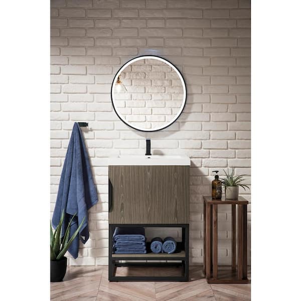Columbia 23.6 in. W x 18.1 in. D x 35.4 in. H Single Bath Vanity in Ash Gray with White Glossy Composite Stone Top