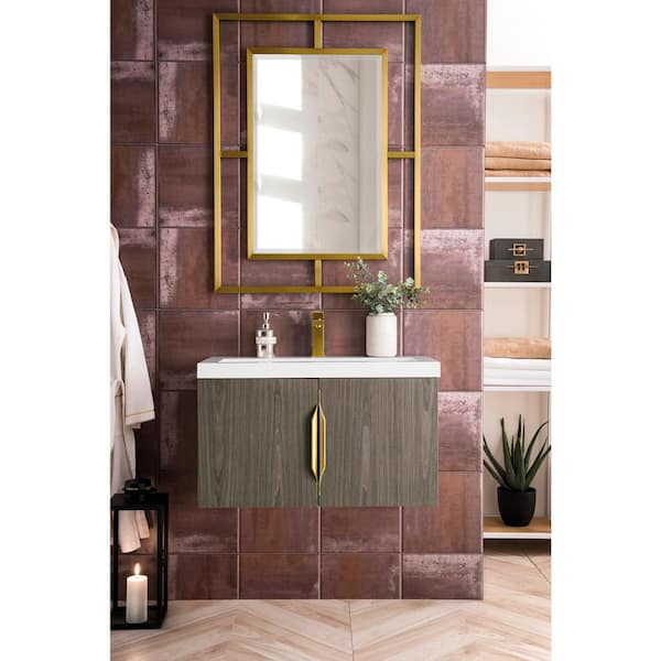 Columbia 31.5 in. W x 15.4 in. D x 16.9 in. H Single Bathroom in Vanity Ash Gray & White Engineered Stone Composite Top