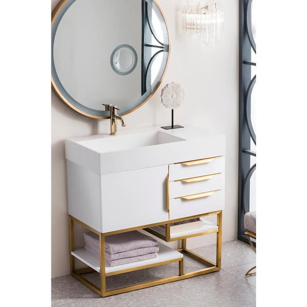 Columbia 35.5 in. W x 19 in. D x 36 in. H Single Bath Vanity in Glossy White with Glossy White Composite Top