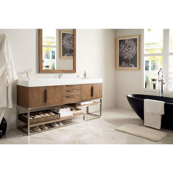 Columbia 72.5 in. W x 19 in. D x 36 in. H Double Bath Vanity in Latte Oak with Glossy White Composite Top