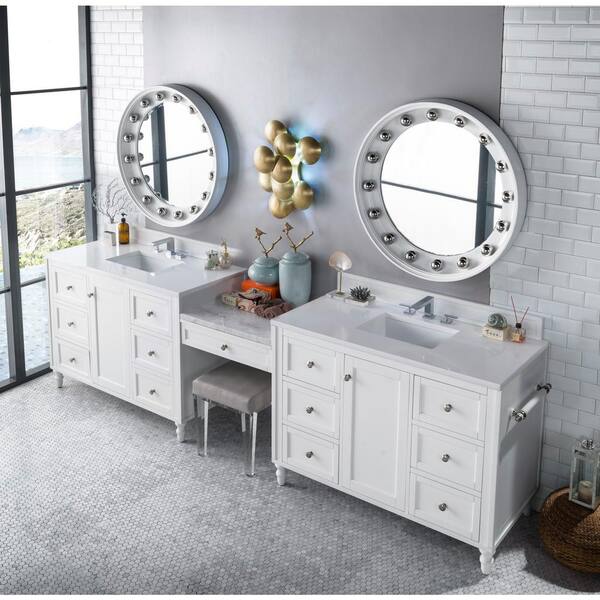 Copper Cove Encore 122.0 in. W x 23.5 in. D x 36.3 in. H Bathroom Vanity in Bright White with White Zeus Quartz Top