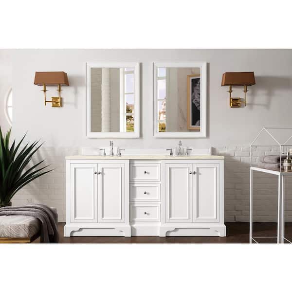 De Soto 73.3 in. W x 23.5 in. D x 36.3 in. H Bath Vanity in Bright White with Eternal Marfil Quartz Top