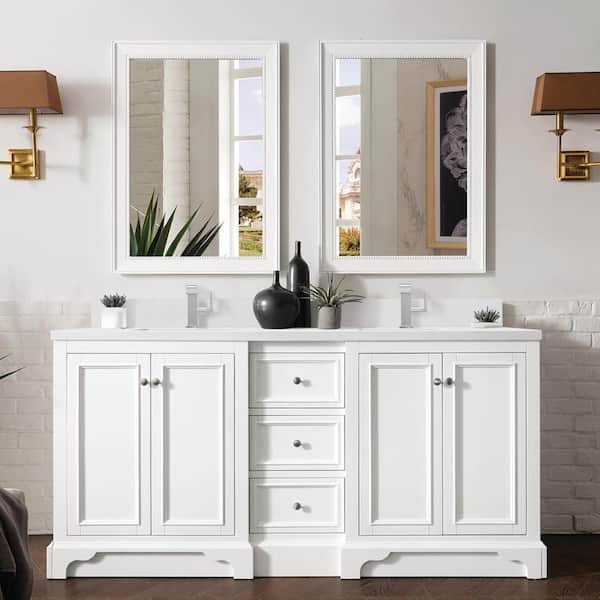 De Soto 73.3 in. W x 23.5 in. D x 36.3 in. H Double Bathroom Vanity in Bright White with White Zeus Quartz Top