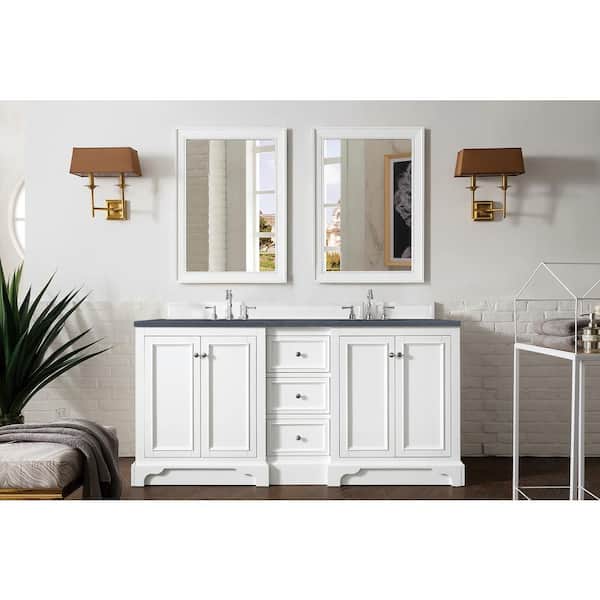 De Soto 73.3 in. W x 23.5 in.D x 36.3 in. H Double Vanity in Bright White with Quartz Top in Charcoal Soapstone