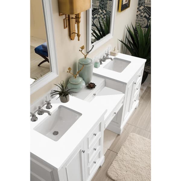 De Soto 83.1 in. W x 23.5 in. D x 36.3 in. H Double Bathroom Vanity in Bright White with White Zeus Quartz Top