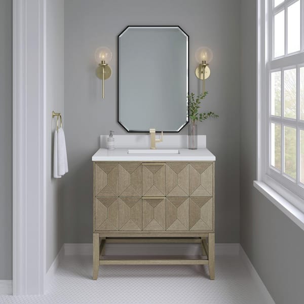 Emmeline 36.0 in. W x 23.5 in. D x 37.2 in. H Single Bath Vanity in Pebble Oak with White Zeus Silestone Quartz Top