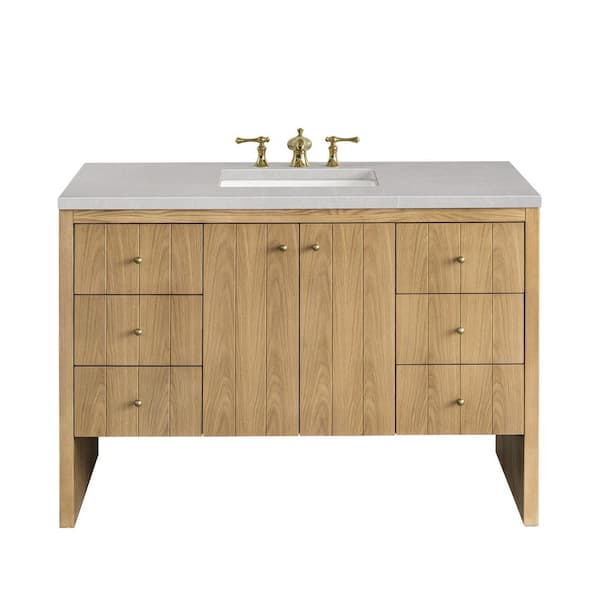 Hudson 48.0 in. W x 23.5 in. D x 34.2 in. H Bathroom Vanity in Light Oak with Eternal Serena Quartz Top