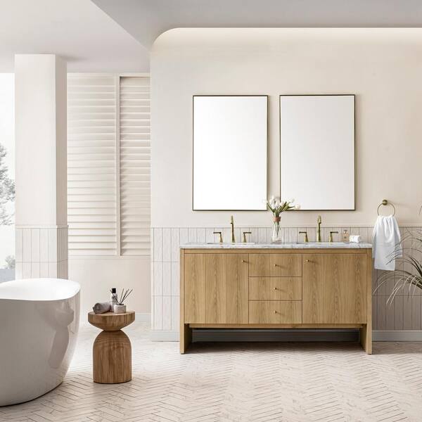 Hudson 60.0 in. W x 23.5 in. D x 34.2 in. H Bathroom Vanity in Light Oak with Eternal Jasmine Pearl Quartz Top