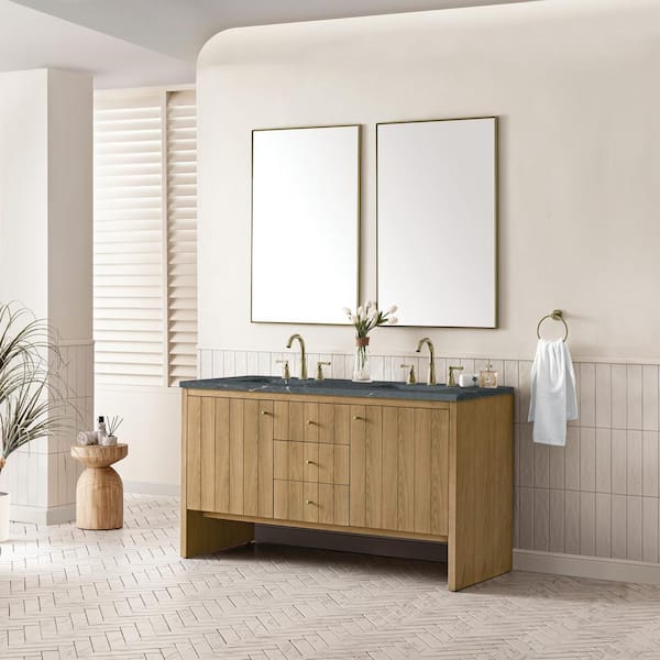 Hudson 60.0 in. W x 23.5 in. D x 34.2 in. H Double Bathroom Vanity in Light Natural Oak with Parisien Bleu Quartz Top