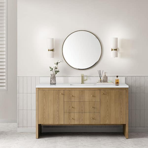 Hudson 60.0 in. W x 23.5 in. D x 34.2 in. H Single Bathroom Vanity in Light Natural Oak with White Zeus Quartz Top