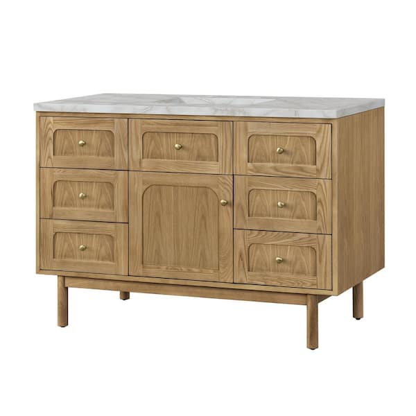 Laurent 48.0 in. W x 23.5 in. D x 34.2 in. H Single Bathroom Vanity Light Natural Oak and Victorian Silver Quartz Top