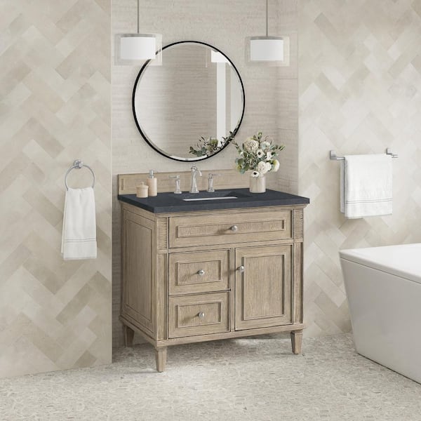 Lorelai 36.0 in. W x 23.5 in. D x 34.06 in. H Single Bath Vanity in Whitewashed Oak with Charcoal Soapstone Quartz Top