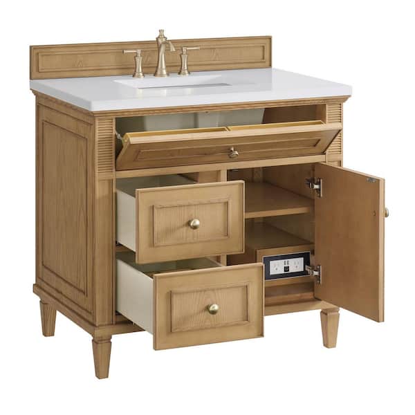 Lorelai 36.0 in. W. x 23.5 in. D x 34.06 in. H Single Bathroom Vanity in Light Natural Oak with White Zeus Quartz Top