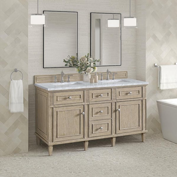 Lorelai 60.0 in. W x 23.5 in. D x 34.06 in. H Double Vanity in Whitewashed Oak with Carrara White Marble Top