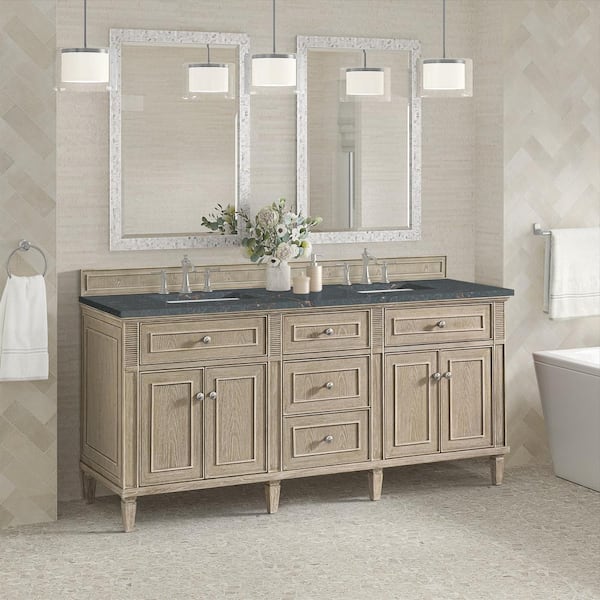 Lorelai 72.0 in. W x 23.5 in. D x 34.06 in. H Double Bathroom Vanity in Whitewashed Oak with Parisien Bleu Quartz Top