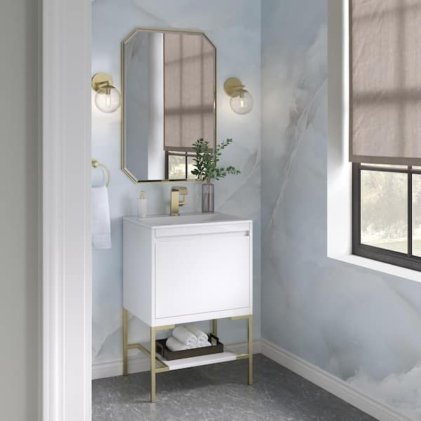 Mantova 23.6 in. W x 18.1 in. D x 36 in. H Bathroom Single Vanity in Glossy White with Glossy White Composite Stone Top