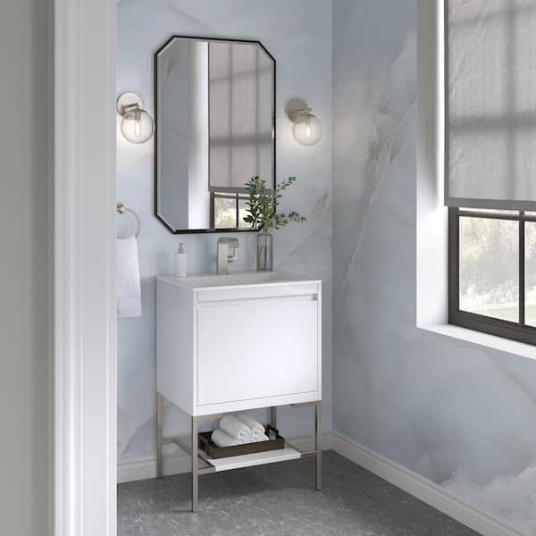 Mantova 23.6 in. W x 18.1 in. D x 36 in. H Single Bathroom Vanity Glossy White and Glossy White Composite Stone Top