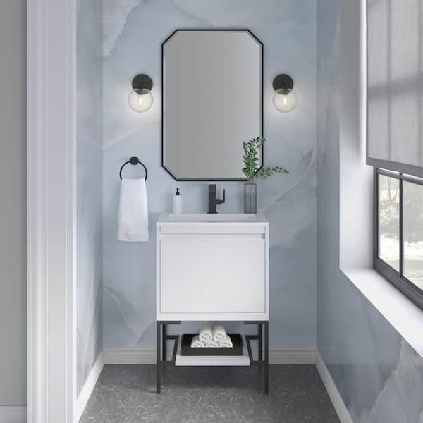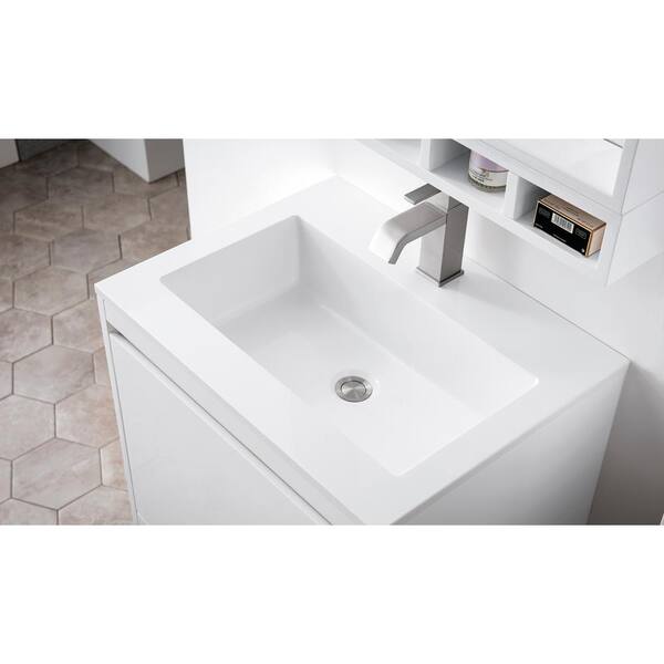 Mantova 23.6 in. W x 18.1 in. D x 36 in. H Single Bathroom Vanity in Glossy White and Engineered Composite Stone Top