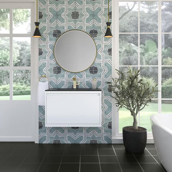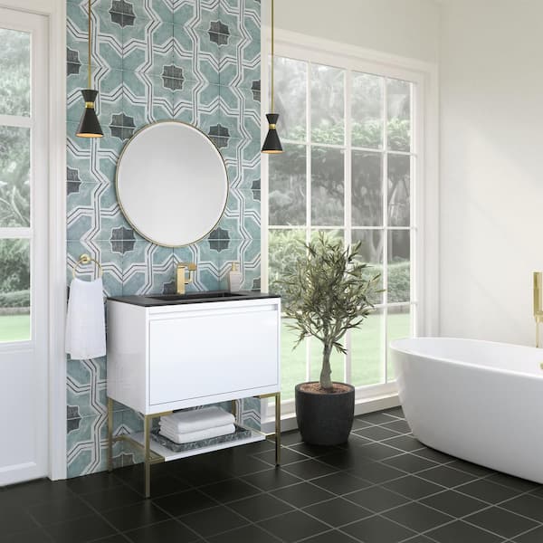 Mantova 31.5 in. W x 18.1 in. D x 36 in. H Single Bathroom Vanity Glossy White and Charcoal Black Composite Stone Top