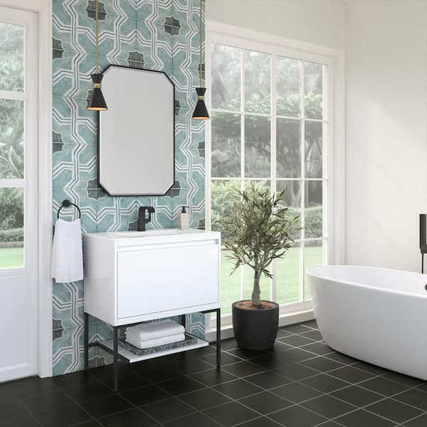 Mantova 31.5 in. W x 18.1 in. D x 36 in. H Single Bathroom Vanity Glossy White and Glossy White Composite Stone Top