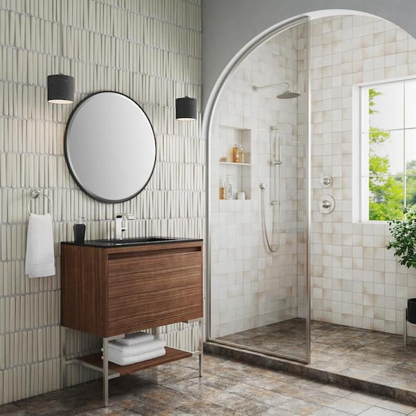 Mantova 31.5 in. W x 18 in. D x 36 in. H Single Bath Vanity in Mid-Century Walnut & Black Engineered Stone Composite Top