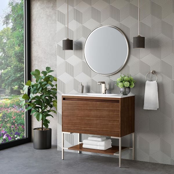 Mantova 35.4 in. W x 18.1 in. D x 35.4 in. H Single Bath Vanity Cabinet Without Top in Mid-Century Walnut