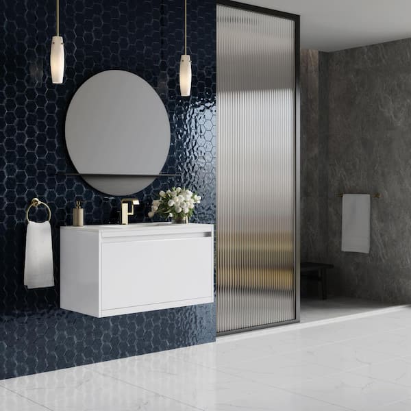 Mantova 35.4 in. W x 18.1 in. D x 36 in. H Single Vanity Glossy White and Glossy White Composite Stone Top