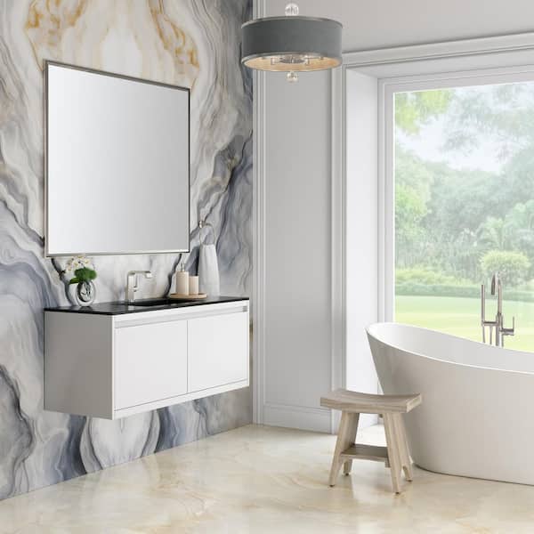 Mantova 47.3 in. W x 18.1 in. D x 20.6 in. H Single Bathroom Vanity Glossy White and Charcoal Black Composite Stone Top