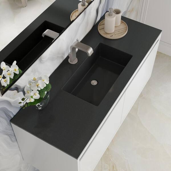 Mantova 47.3 in. W x 18.1 in. D x 36 in. H Single Bathroom Vanity Glossy White and Charcoal Black Composite Stone Top