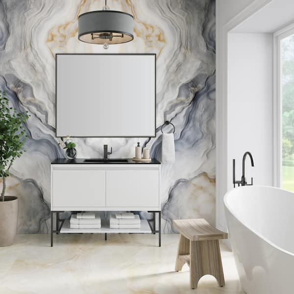 Mantova 47.3 in. W x 18.1 in. D x 36 in. H Single Bathroom Vanity Glossy White and Charcoal Black Composite Stone Top