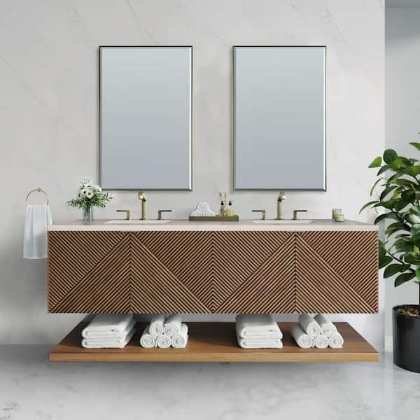 Marcello 72.0 in. W x 23.5 in. D x 37.2 in. H Bathroom Vanity in Chestnut with Eternal Marfil Quartz Top