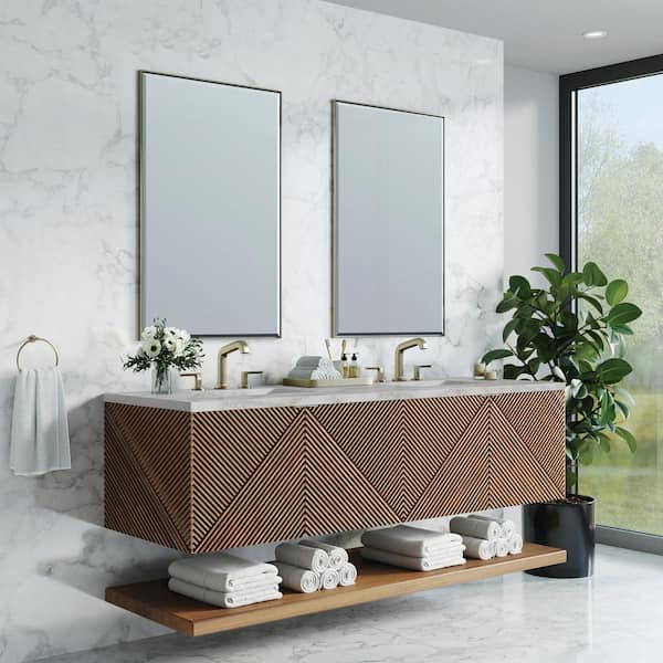 Marcello 72.0 in. W x 23.5 in. D x 37.2 in. H Double Bathroom Vanity in Chestnut with Victorian Silver Quartz Top